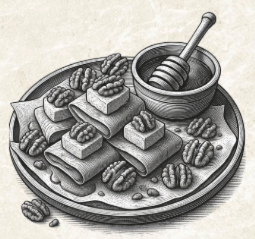 De leche cruda de oveja con nueces de Villagarcía de Campos y miel de tomillo