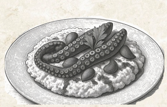 Con piñones de Pedrajas de San Estebán, uvas pasas y parmentier de boniato